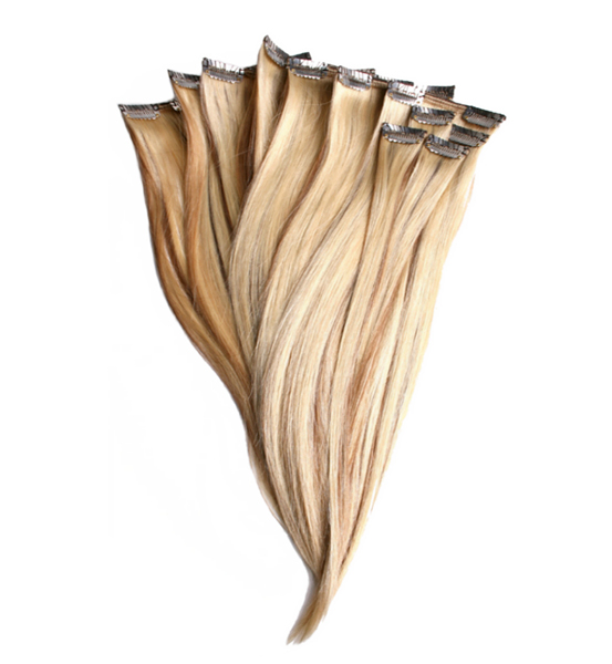 Les Rallonges à Clips PRIVÉ contiennent 11 pèces d'extensions à clips ultra épaisses, soit 4 pièces de 4" (10cm) de largeur; 3 pièces de 5" (12cm) de largeur, et 4 pièces de 1" (2cm) de largeur. Ceci est la quantité de cheveux d'une chevelure ultra épaisse.